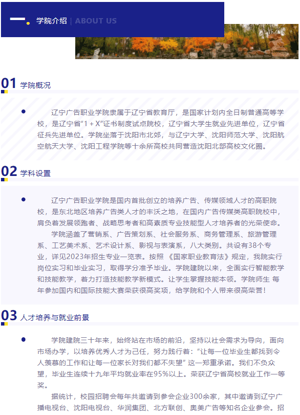 更多详情:辽宁广告职业学院2023年单独招生简章
